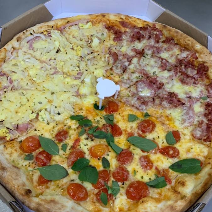 Na compra um uma das nossas pizzas gigantes 16 fatias 45 cm + R$ 10 reais ganhe uma broto doce chocolate ou