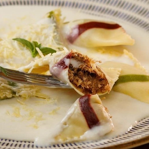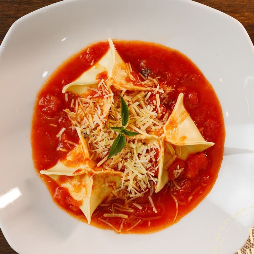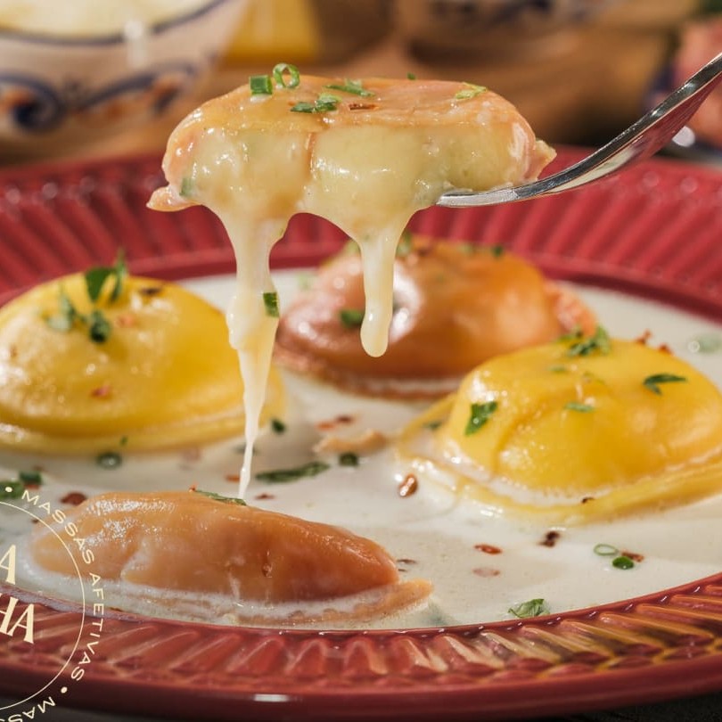 Nosso Nhoque (Gnocchi) artesanal recheado é a base de batata assada, levíssimo, com molho à sua escolha.