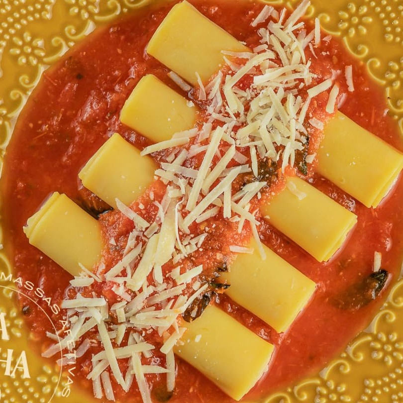 Cannelloni (caneloni) artesanal, recheado com frango desfiado e requeijão cremoso, do jeitinho que a vó fazia. Recheio cremoso e irresistível, preservando todo o sabor caseiro. Produto congelado para manter frescor e qualidade. Não acompanha molho, mas combina perfeitamente com nosso molho 4 queijos ou o suave molho rosê. Prepare em casa ou escolha seu molho favorito para uma refeição prática e deliciosa. Sabor delicado, ideal também para o paladar das crianças.