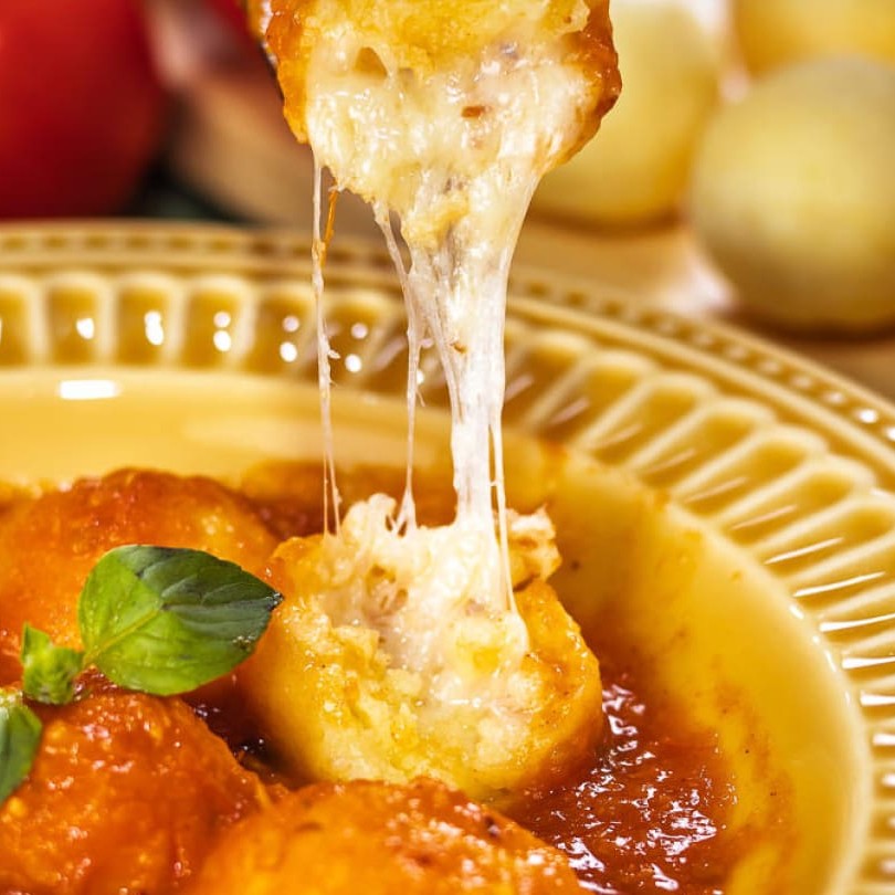 Nhoque (gnocchi) artesanal recheado com muçarela cremosa, sabor delicado e marcante, perfeito para uma refeição caseira e aconchegante. Produto congelado para preservar frescor e qualidade. Não acompanha molho, mas sugerimos combiná-lo com o clássico molho pomodoro ou o cremoso molho rosê. Você também pode selar apenas na manteiga para uma versão simples e irresistível.
