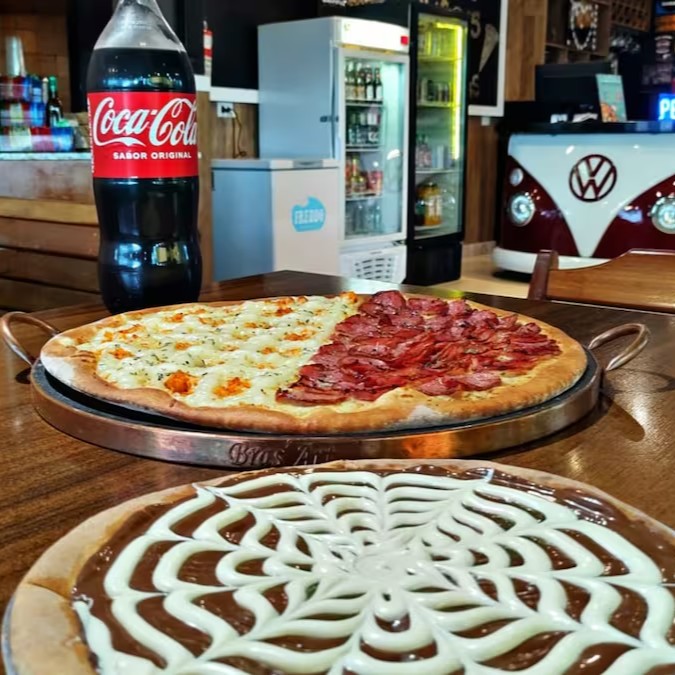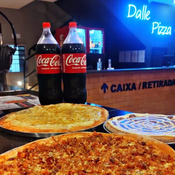 1 Pizza Big 12f(calabresa Frango Catupiry)+1 Broto 4f(2 Amores)+1 Coca 2litros