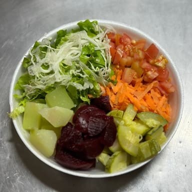 Alface, repolho, tomate, cenoura ralada, chuchu, abobrinha e beterraba. Não Vai Temperada.