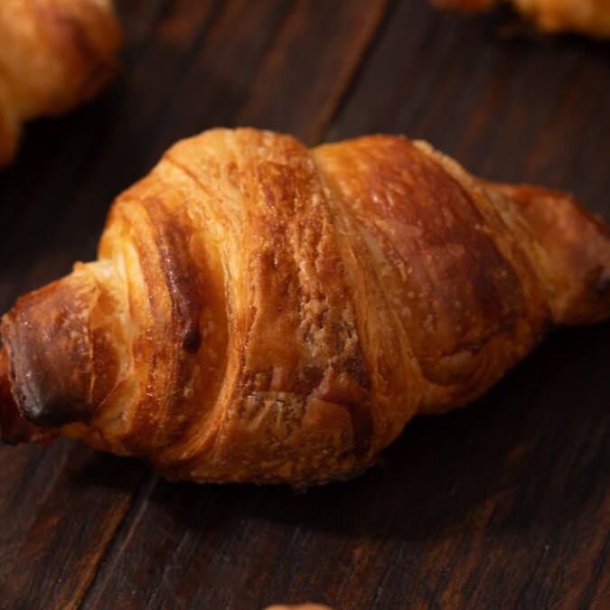 Massa de croissant artesanal, leve e delicada, com camadas douradas e crocantes, preparada com manteiga de alta qualidade que garante sabor único e irresistível.