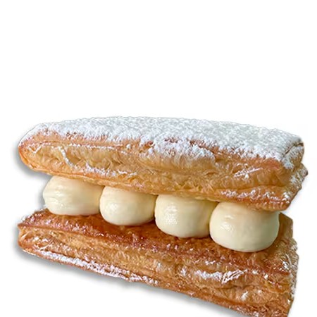 Massa folhada recheada com creme diplomata sabor baunilha. (Imagem meramente ilustrativa)