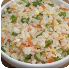 Experimente o yakimeshi de frango, acompanhado de arroz, uma opção deliciosa e nutritiva para o seu Dia.