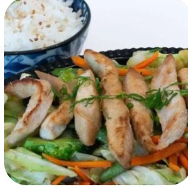 Desfrute do tepans de frango, acompanhado de arroz, uma opção deliciosa e reconfortante para qualquer ocasião.