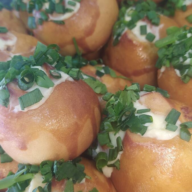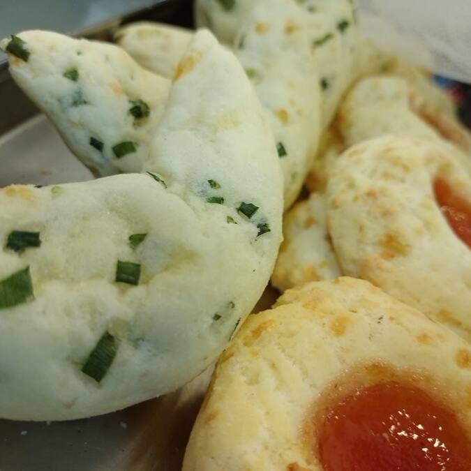 Massa salgada recheada com calabresa molho de alho e cebolinha.