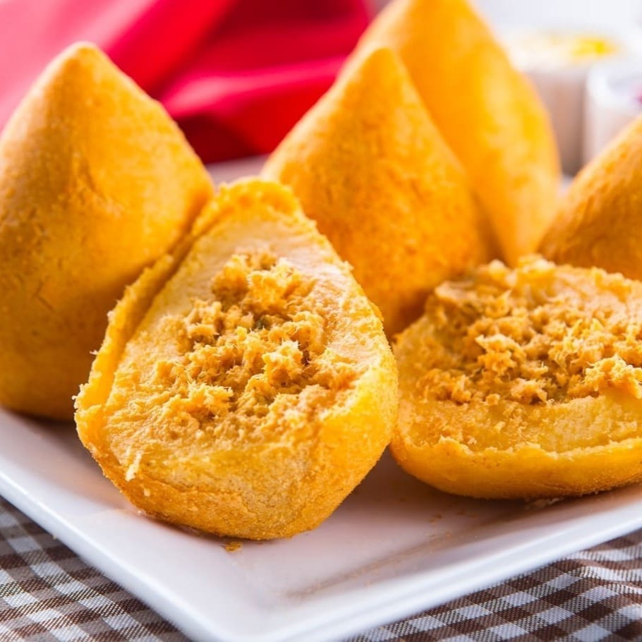 A cada escolha, você recebe 10 salgados do sabor escolhido: Coxinha de Frango, Risoles de carne, Enroladinho de Salsicha, Croquete de Calabresa, Croquete de Queijo e Presunto, Bolinha de Queijo, kibe.