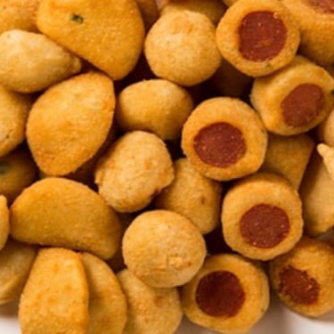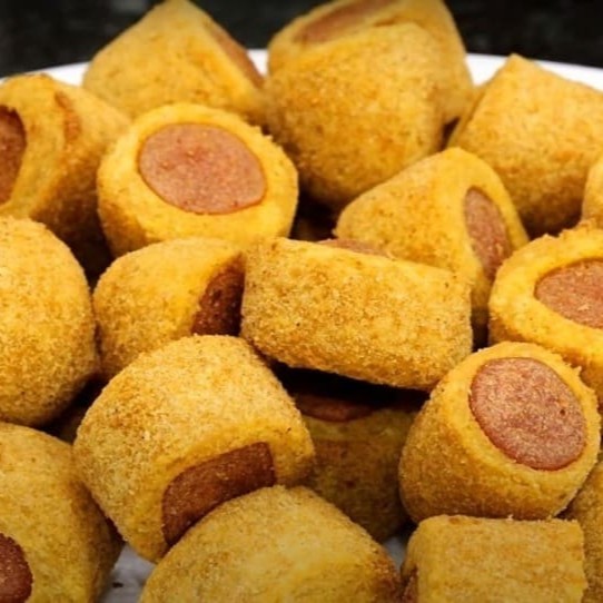 Salgados linha festa aproximadamente 20gr unidade, escolha até 03 sabores, quais sejam: Especial Milho e Queijo, Risole de Carne, Croquete de presunto, Coxinha de frango, Bolinha de Queijo (20 unid), Kibe , Croquete de calabresa, Enroladinhos de salsicha.