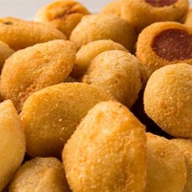 Combo com 50 salgados, sendo: 10 coxinhas, 10 bolinhas de queijo, 10 kibes, 10 Enroladinhos de salsicha, 10 Croquete de calabresa,