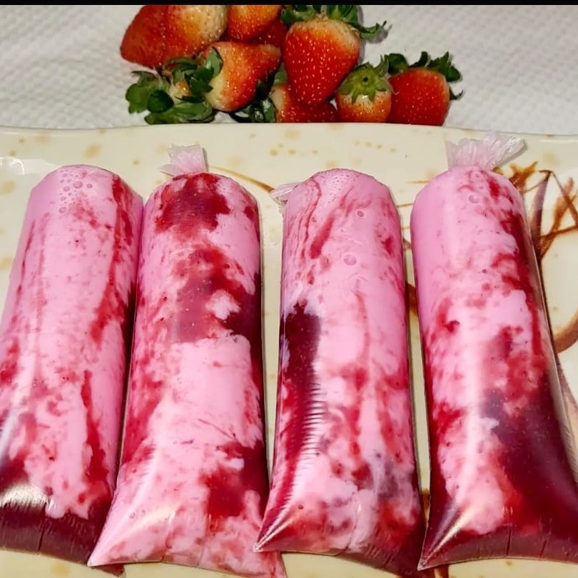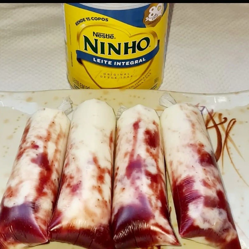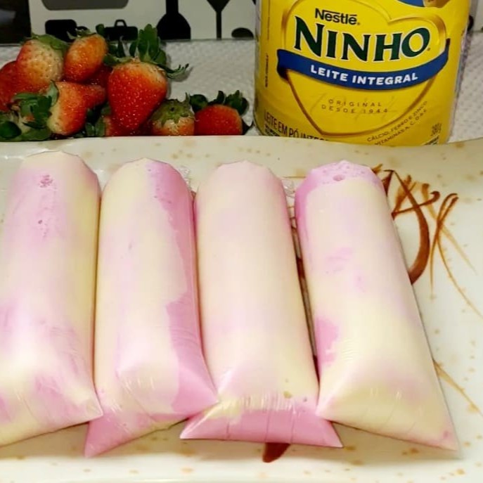 Geladinho Gourmet De Ninho Com Calda De Morango