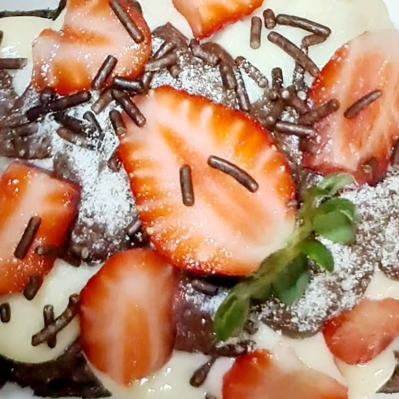 Desfrute de um irresistível Brownie coberto com o mais cremoso e autêntico creme de leite Ninho, a irresistível Nutella e pedaços de morangos fresquinhos, finalizado com granulado. Cada mordida é uma verdadeira explosão de sabor. Com um peso aproximado de 250g, este brownie é a indulgência perfeita para qualquer momento do Dia.
