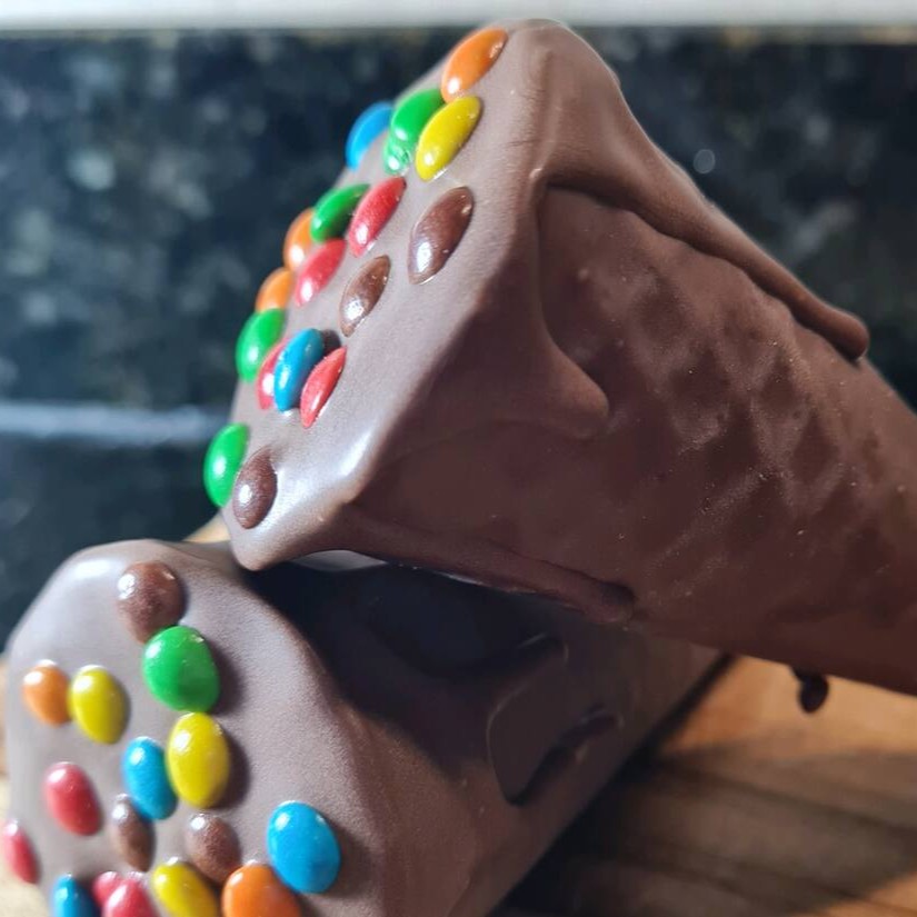 Deliciosa casquinha super crocante, banhada no chocolate ao leite, recheada com chocolate e confeti colorido.
