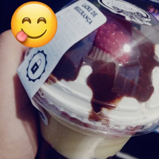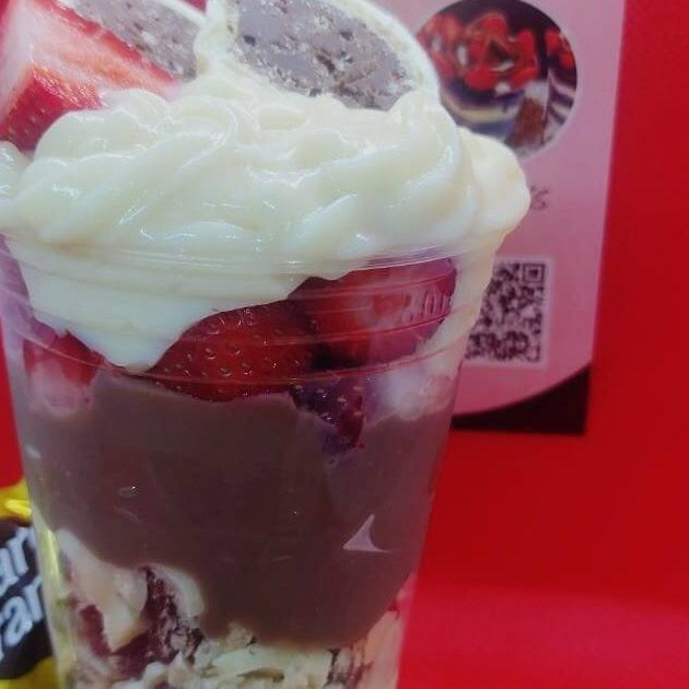 Creme de chocolate , Sonho de Valsa, creme de chocolate branco, morango, creme de chocolate , ( Enfeite: Sonho de Valsa e morango).