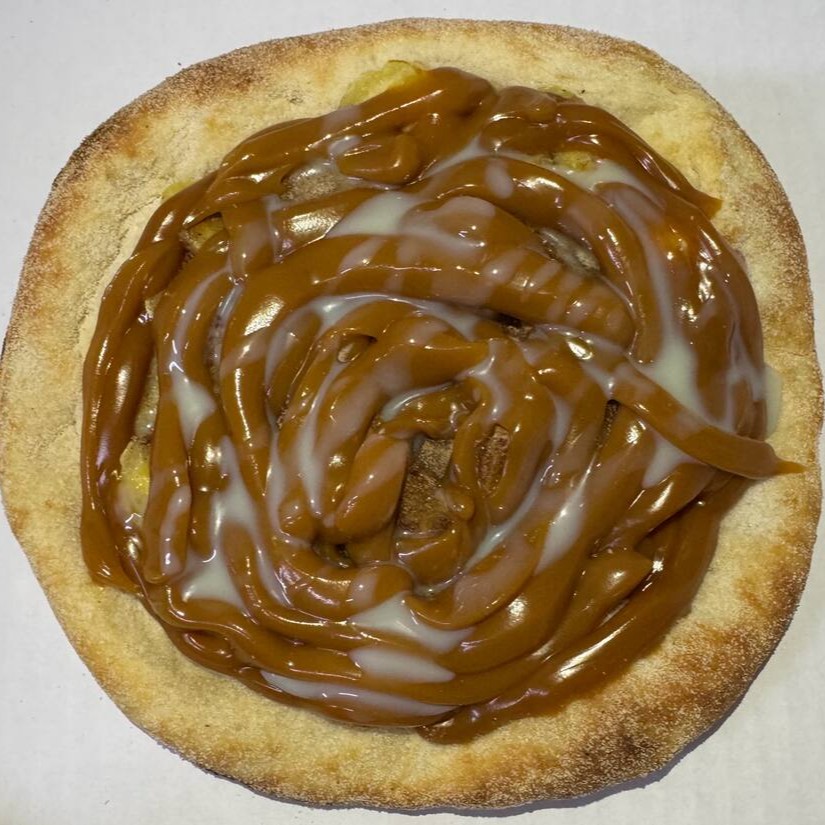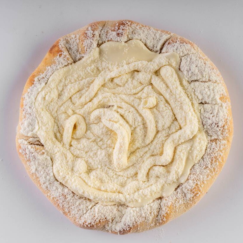 Molho artesanal da vovó, queijo muçarela ralado, carne seca de qualidade, rodelas de pimentão, mix de cebola roxa e branca azeitona verde, pimenta biquinho, cream cheese e orégano