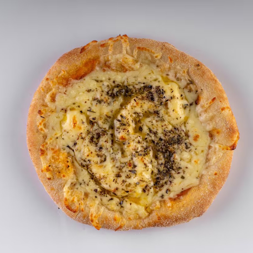 Molho artesanal da vovó, queijos muçarela ralado, creme de queijo, parmesão, provolone, prato e Catupiry, finalizada com orégano