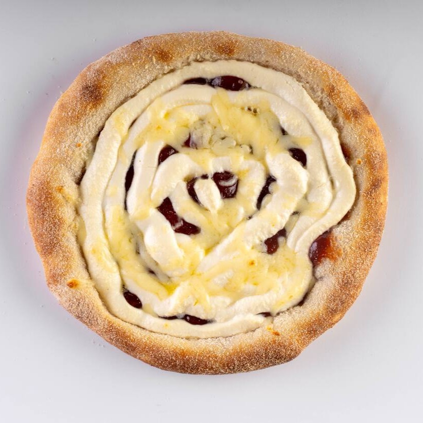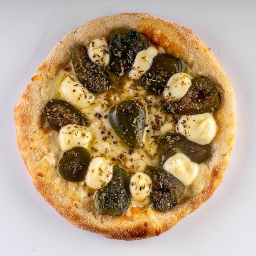 Molho artesanal, mussarela, figos em caldas, Catupiry e orégano