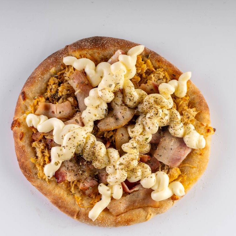 Molho artesanal da vovo, Queijo, Frango, Bacon E Milho