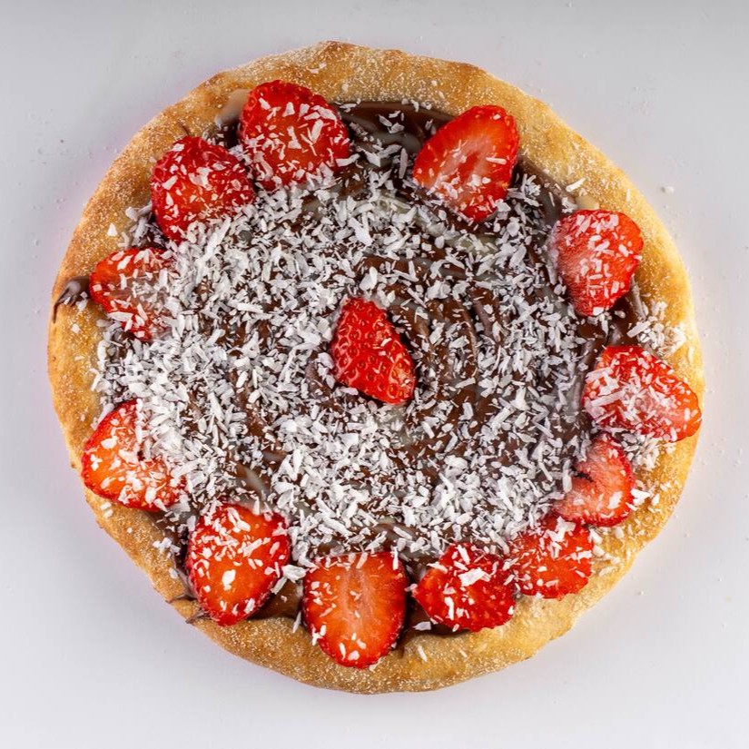 Massa vegana, creme de leite, Chocolate ao leite, morango e coco