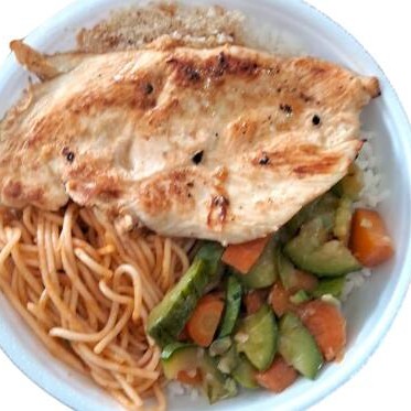 Arroz,Feijão,Farofa,mix de legumes, macarrão,filé de frango grelhado
