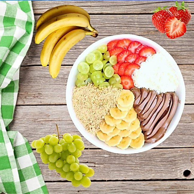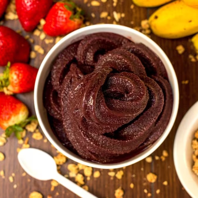 Açaí Com Banana, Granola, Leite Em Pó E Leite Condensado.