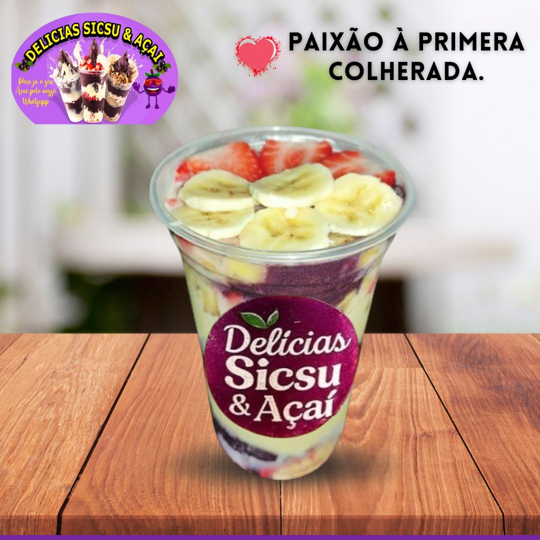 Saboreie nossa irresistível e harmoniosa união do açaí com cupuaçu em copo de 300ml, realçada por uma seleção dos mais variados acompanhamentos, coberturas e frutas, escolhidos de acordo com a sua preferência, adicionando uma explosão de sabores únicos. Obs.: todos os acompanhamentos são cuidadosamente misturados dentro do copo, garantindo uma experiência saborosa e única a cada colherada.