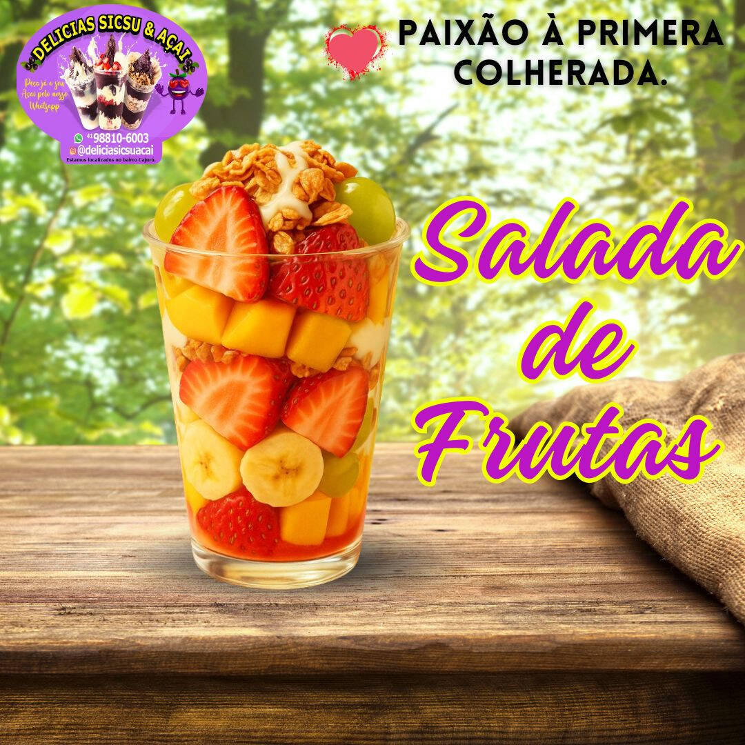 Desfrute uma deliciosa e nutritiva salada de frutas frescas, cortadas em pedaços, como banana, morango, uvas Thompson e manga Tommy, regadas com um delicioso leite condensado e com a crocância de uma irresistível granola, proporcionando uma experiência de sabor e texturas inesquecível. Nota: Todos os acompanhamentos estão inclusos dentro do copo, não sendo enviados separadamente. Uma delícia completa e pronta para ser saboreada!