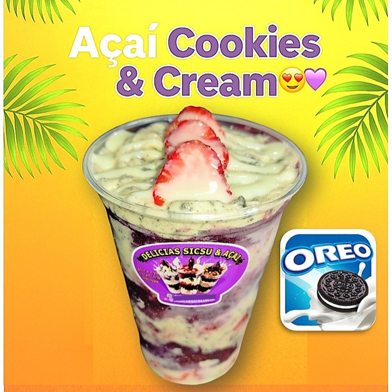 Açaí Cookies & Cream De Oreo, Morangos, Leite Condensado E Leite Em Pó