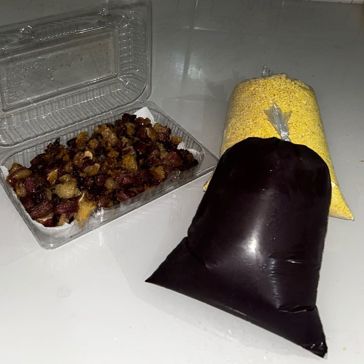 500 ml Açaí grosso, 500g farinha de Mandioca, 180g de Charque