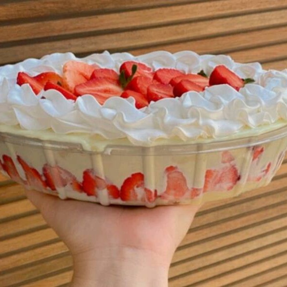 Massa super molhadinha, recheio cremoso de Leite Ninho e morangos fresquinhos in natura