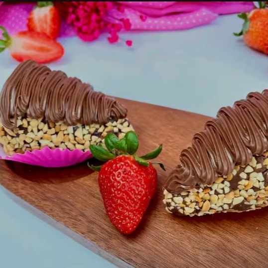 Preparado com morangos frescos selecionados, batidos com leite integral, creme de leite e leite condensado para criar um creme ultra aveludado e naturalmente saboroso. Cada unidade recebe uma camada generosa de Nutella, trazendo aquele toque sofisticado e irresistível que transforma o geladinho em uma verdadeira sobremesa gourmet. Perfeito, cremoso e irresistivelmente lindo!