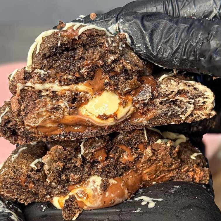 Para os amantes de contrastes perfeitos: Nossa massa dark traz um sabor intenso de chocolate meio amargo que abraça um recheio cremoso de brigadeiro de leite Ninho com Nutella no meio. O equilíbrio do doce com o amarguinho da massa vai te conquistar fácil. Ele é grandão (aprox. 150g) e segue o padrão: crocante por fora, macio por dentro. Nada de massa seca ou sem graça — aqui é cookie de respeito!