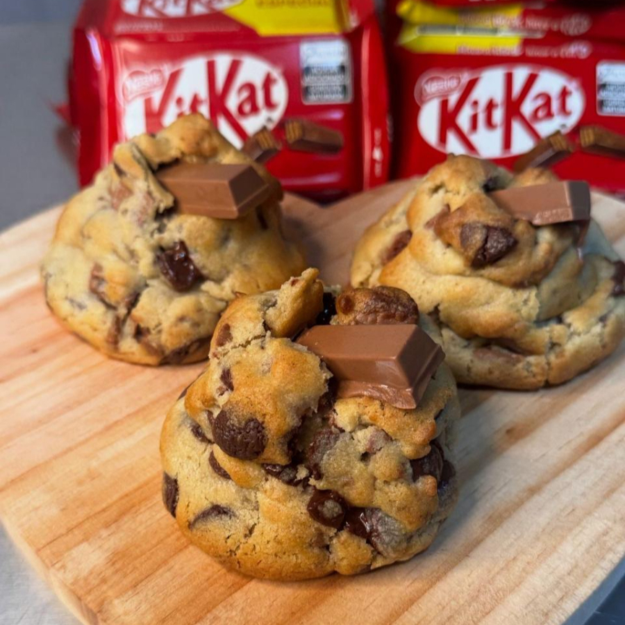 Massa tradicional com chocolate meio amargo, ao leite e Kit Kat.