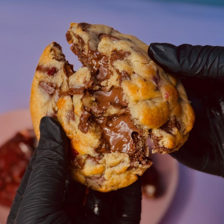 Esse cookie é tipo aquele amigo sincero: cheio de personalidade, recheado de verdades! Massa tradicional com muito chocolate ao leite e meio amargo (usamos chocolate nobre, não é cobertura fracionada ta?) além de ser recheado de Nutella (Original). Ele é grandão. (aprox 150g). Todos os nossos cookies são com massa crocante por fora e macia por dentro, nada daquela massa que parece bolo batumado sabe?