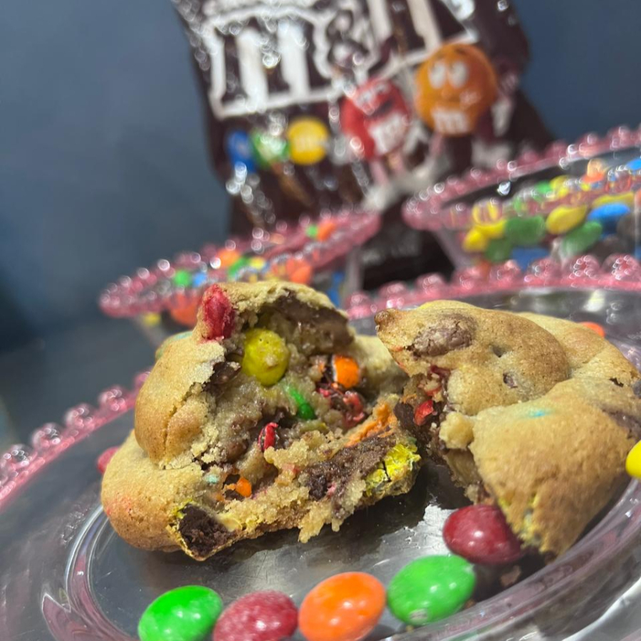 Cookie amanteigado, macio por dentro, crocante por fora, com gotas de chocolate ao leite e muito M&M's coloridos. Irresistível. Peso aproximado 140g.