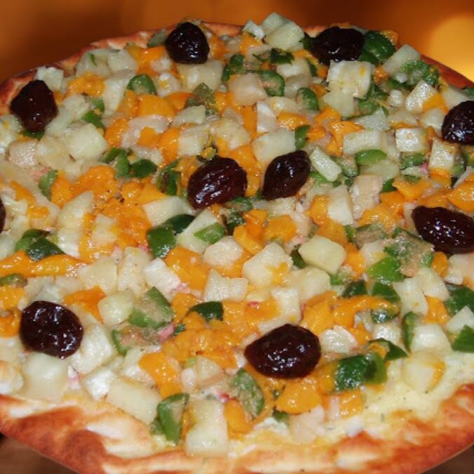 Calzone california mussarela ricota abacaxi pessego ameixa e figo