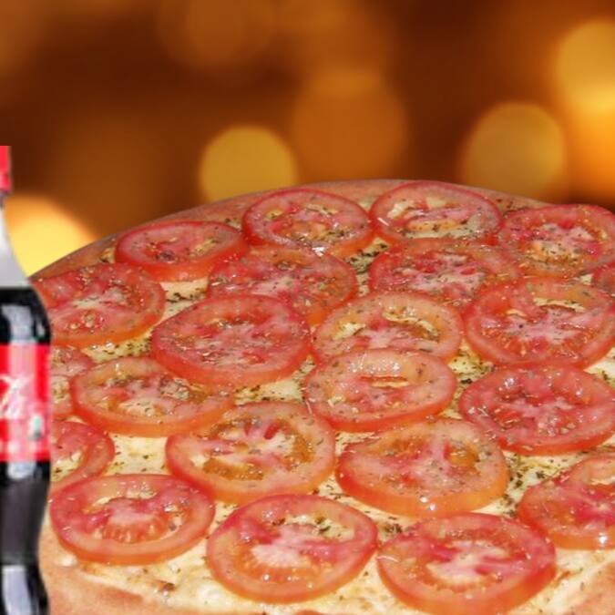Pizza artesanal, base com molho de tomate e mussarela,tomate fatiado e aquele aroma delicioso de manjericão + Coca cola 600 ml