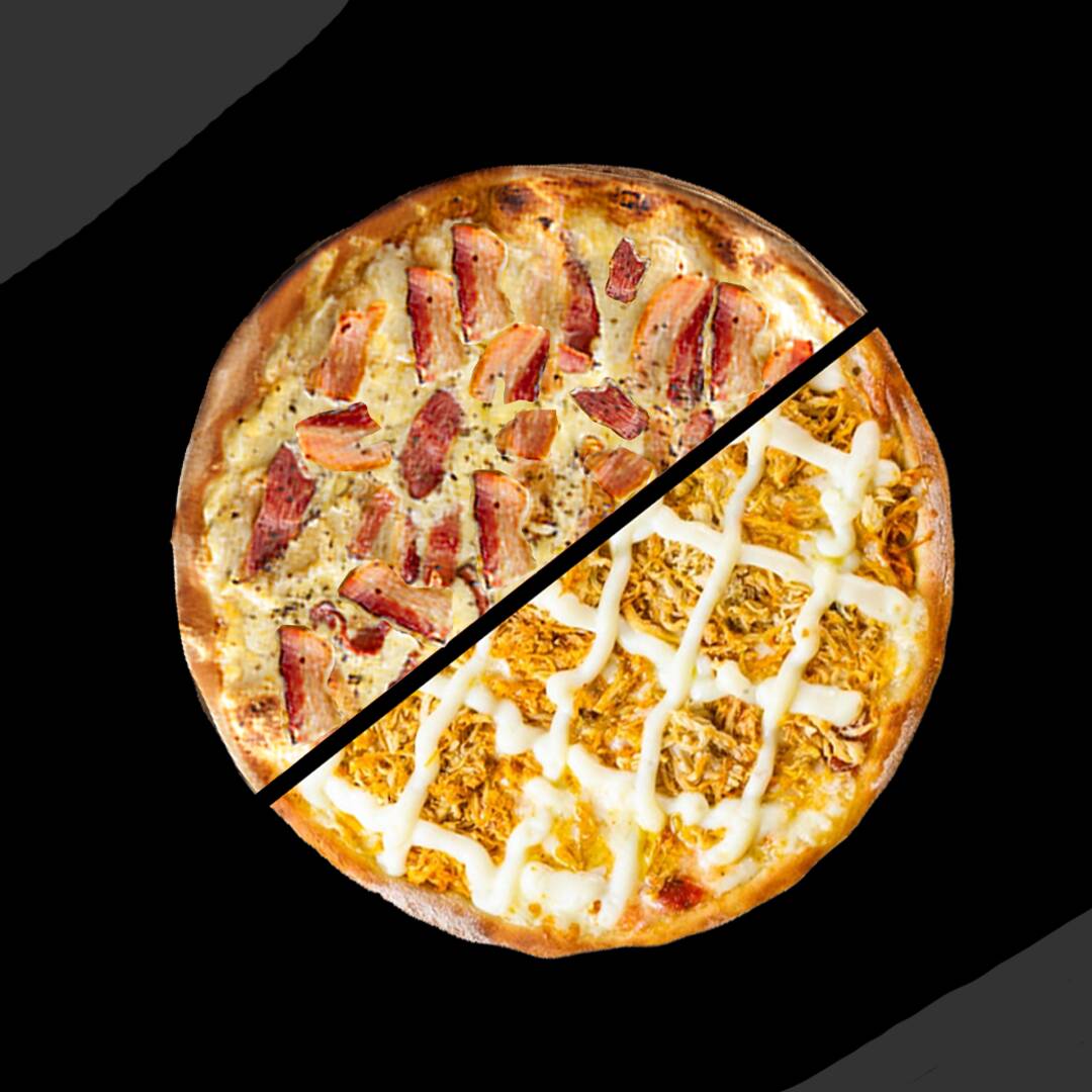 Pizza Grande Meia Frango Com Requeijão E Meia Bacon