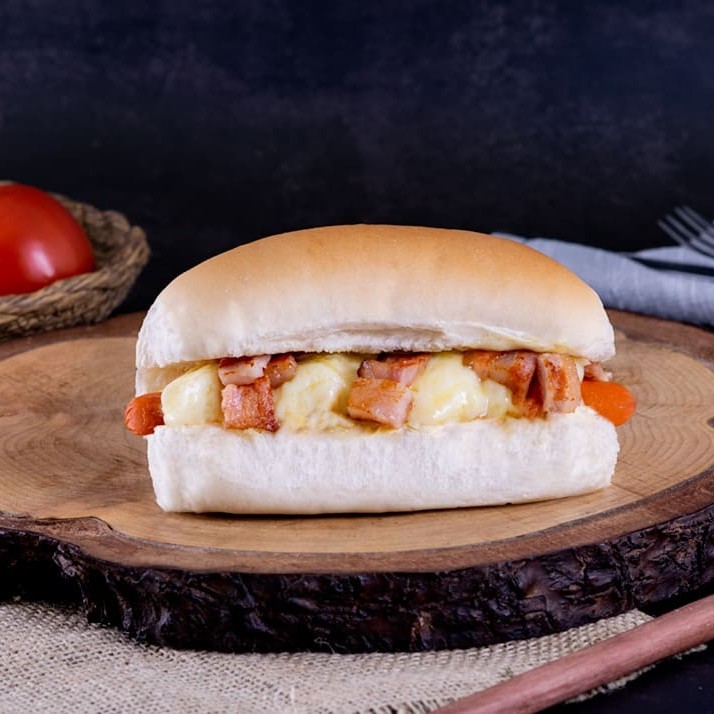 01 salsicha Perdigão, bacon ou calabresa ou frango, com cream cheese Philadelphia ou muçarela, maionese Hellmann´s, salada ( tomate, milho e cebola) e batata palha.
