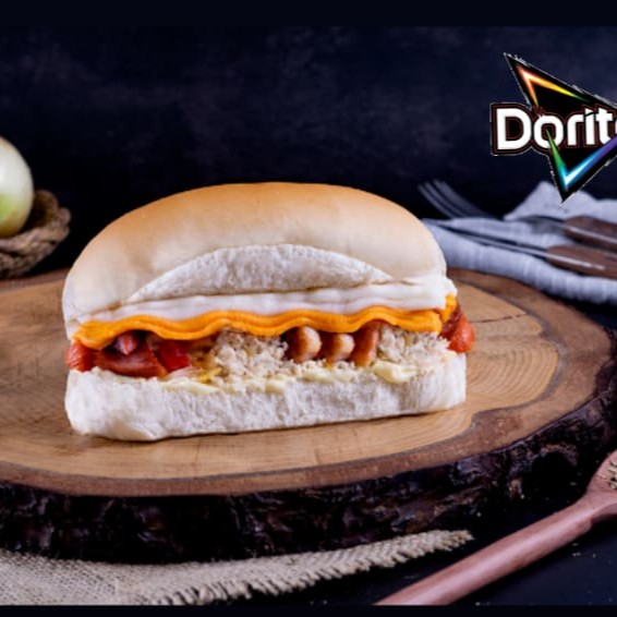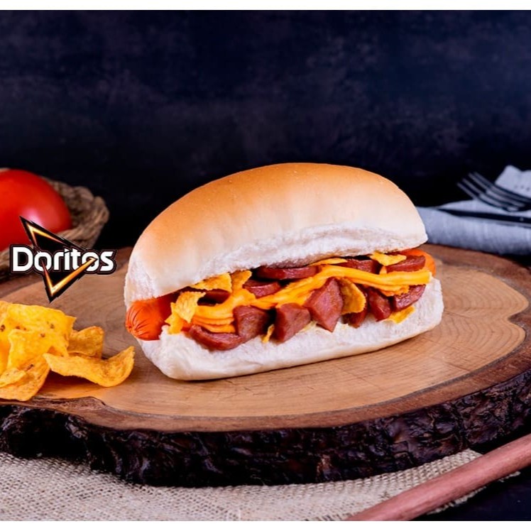01 salsicha Perdigão, bacon ou calabresa ou frango, cheddar, maionese Hellmann´s, salada ( tomate, milho e cebola), e Doritos.