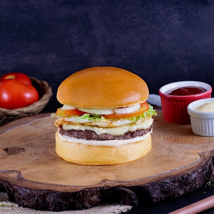 Pão, maionese Helmann´s, hambúrguer de 120gr, ovo caipira, muçarela ou cheddar, tomate, cebola e alface americana.