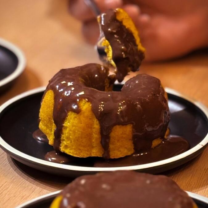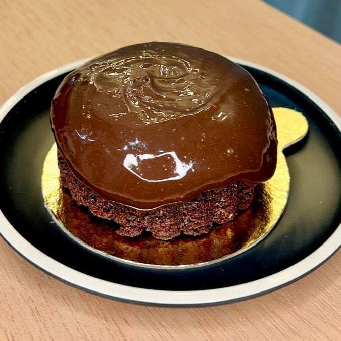 Mini bolinho de chocolate super macio, com generosa cobertura de Brigadeiro Gourmet, pesando ao todo 150g