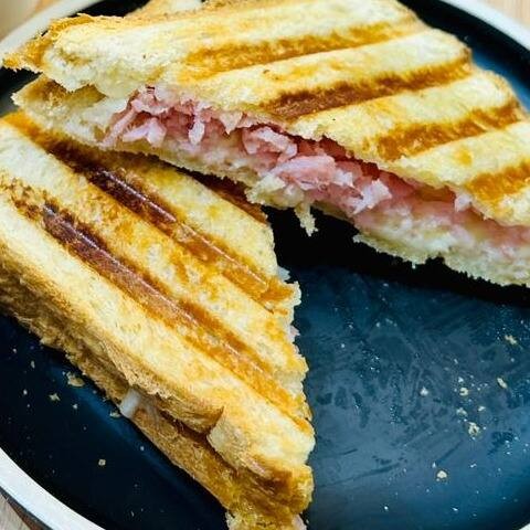 2 Fatias de pão de forma com manteiga, queijo e presunto, prensado na chapa