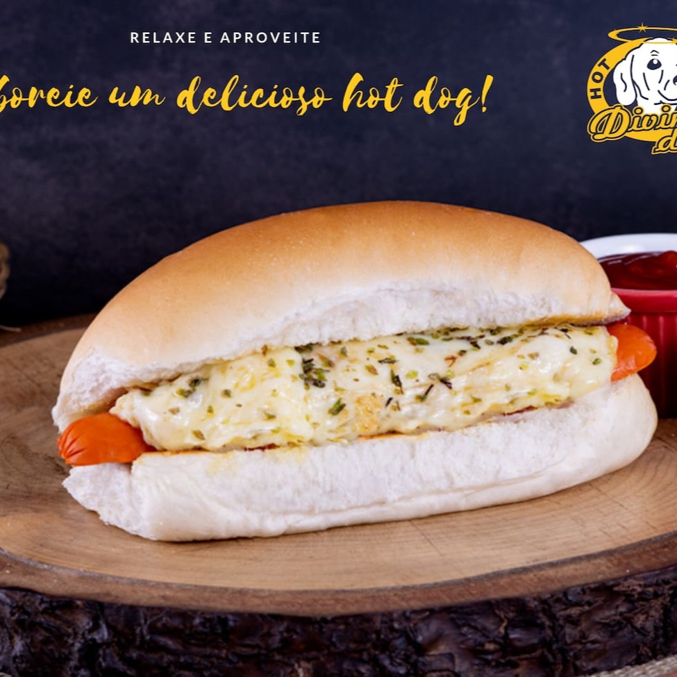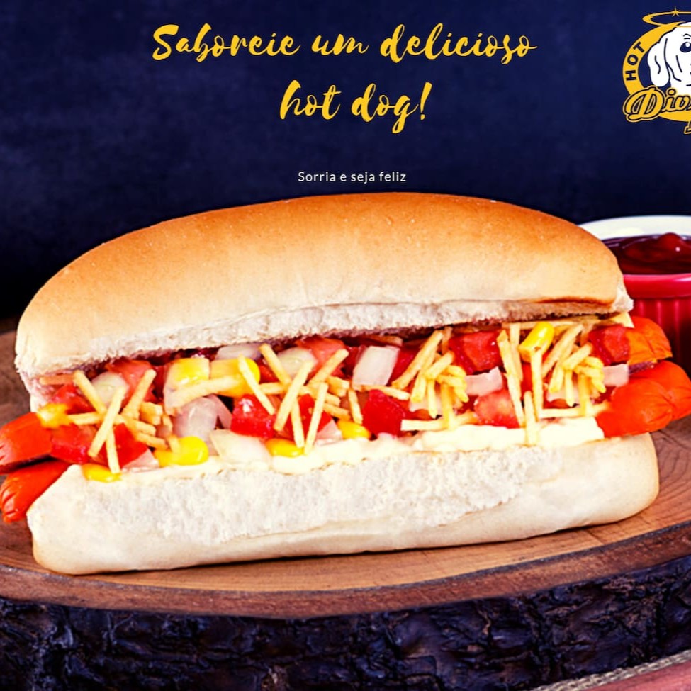 Pão, 1 salsicha (Perdigão), frango ou bacon ou calabresa, cheddar ou Catupiry, maionese, tomate, cebola, Milho e Batata Palha.