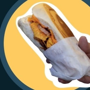 Pão, alcatra em tiras, bacon, mussarela, maionese, tomate e cebola frita.