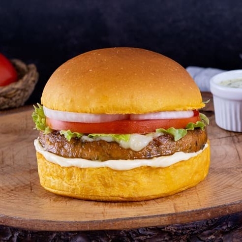 Pão, maionese, hamburguer veg 120g (futuro burguer) mussarela ou cheddar, tomate, cebola e alface americana.