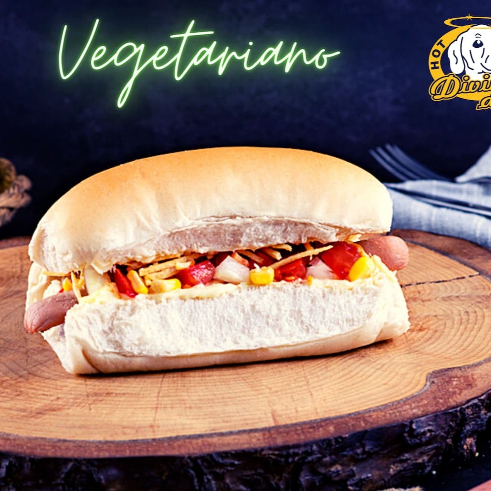 Pão, 1 salsicha de soja, mussarela, orégano, maionese, tomate, cebola, Milho e Batata Palha.