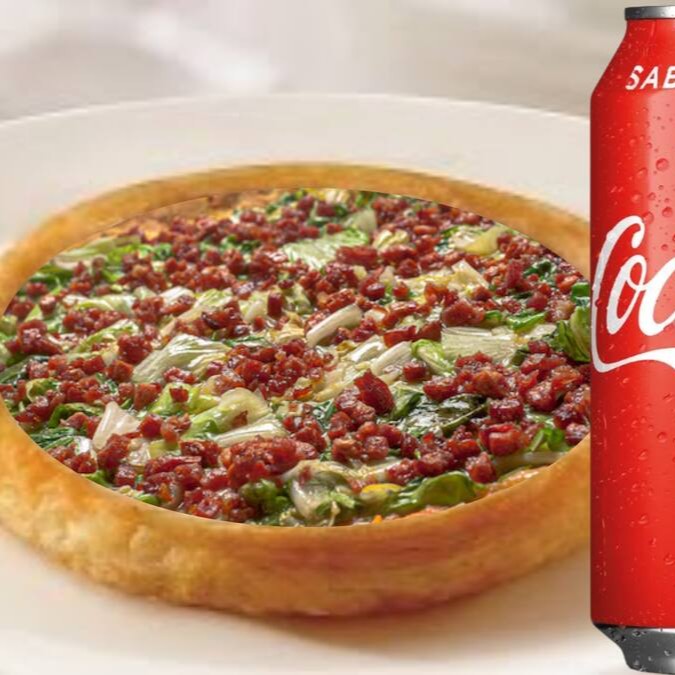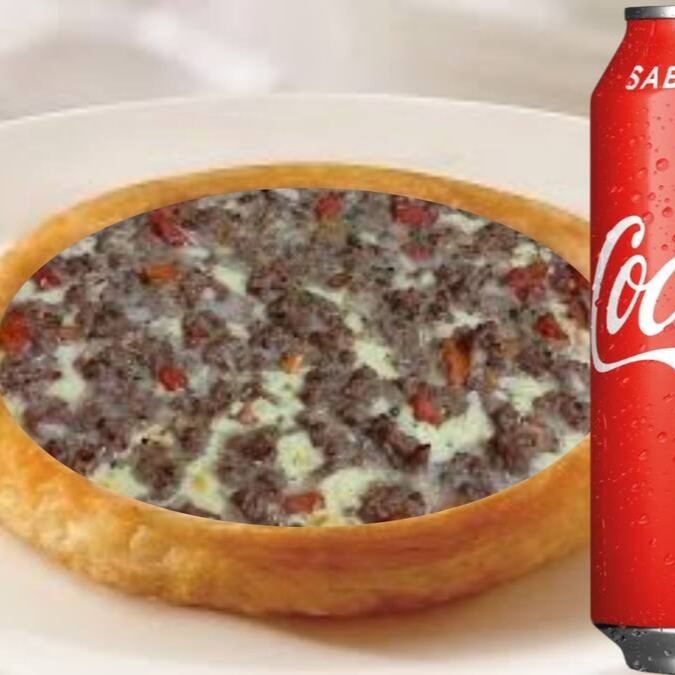 Carne moída (temperada, com tomate e cebola), orégano + Coca Cola 350 ml