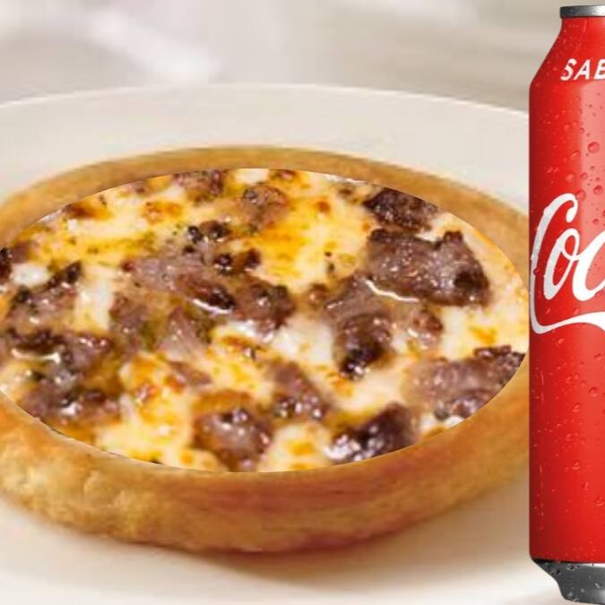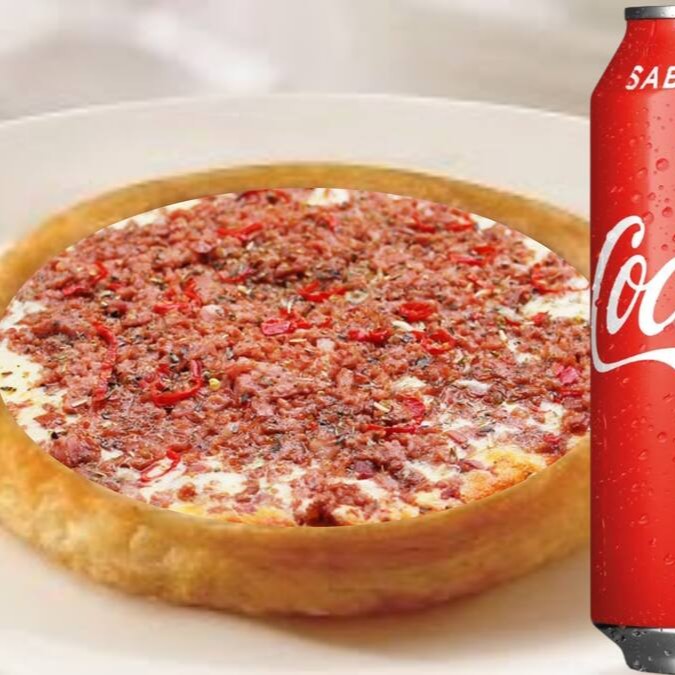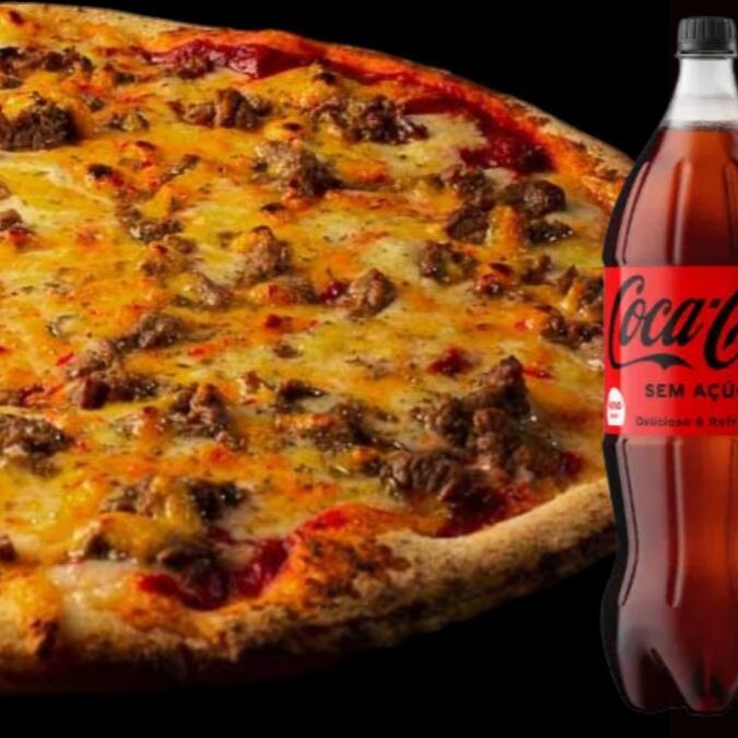 Mussarela, alcatra, cebola, orégano + Coca Cola 350 ml