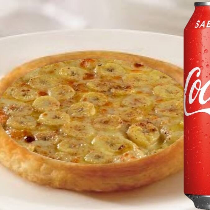 Mussarela, banana, canela, leite condensado + Coca Cola 350 ml